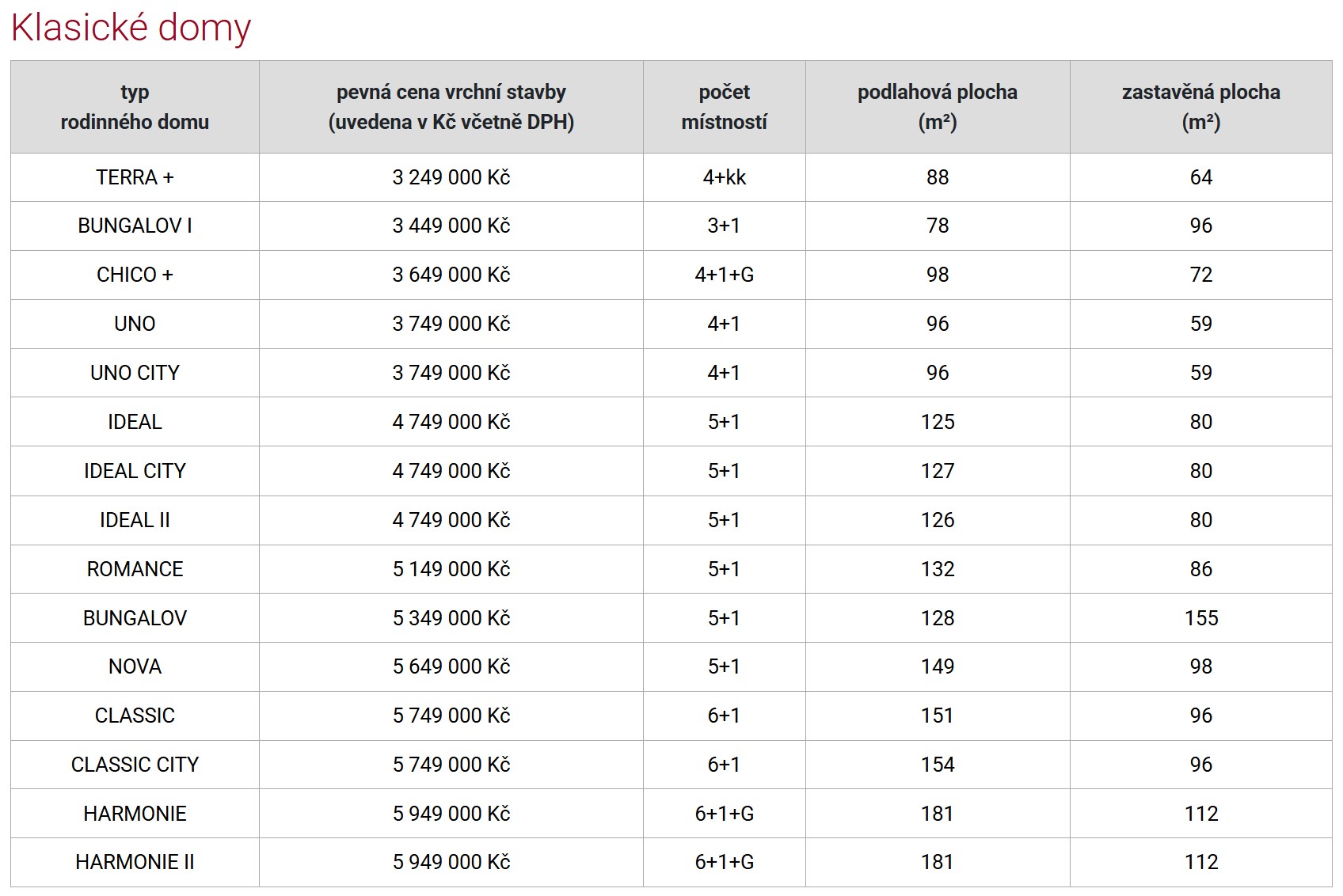 Ceník rodinných domů 2026