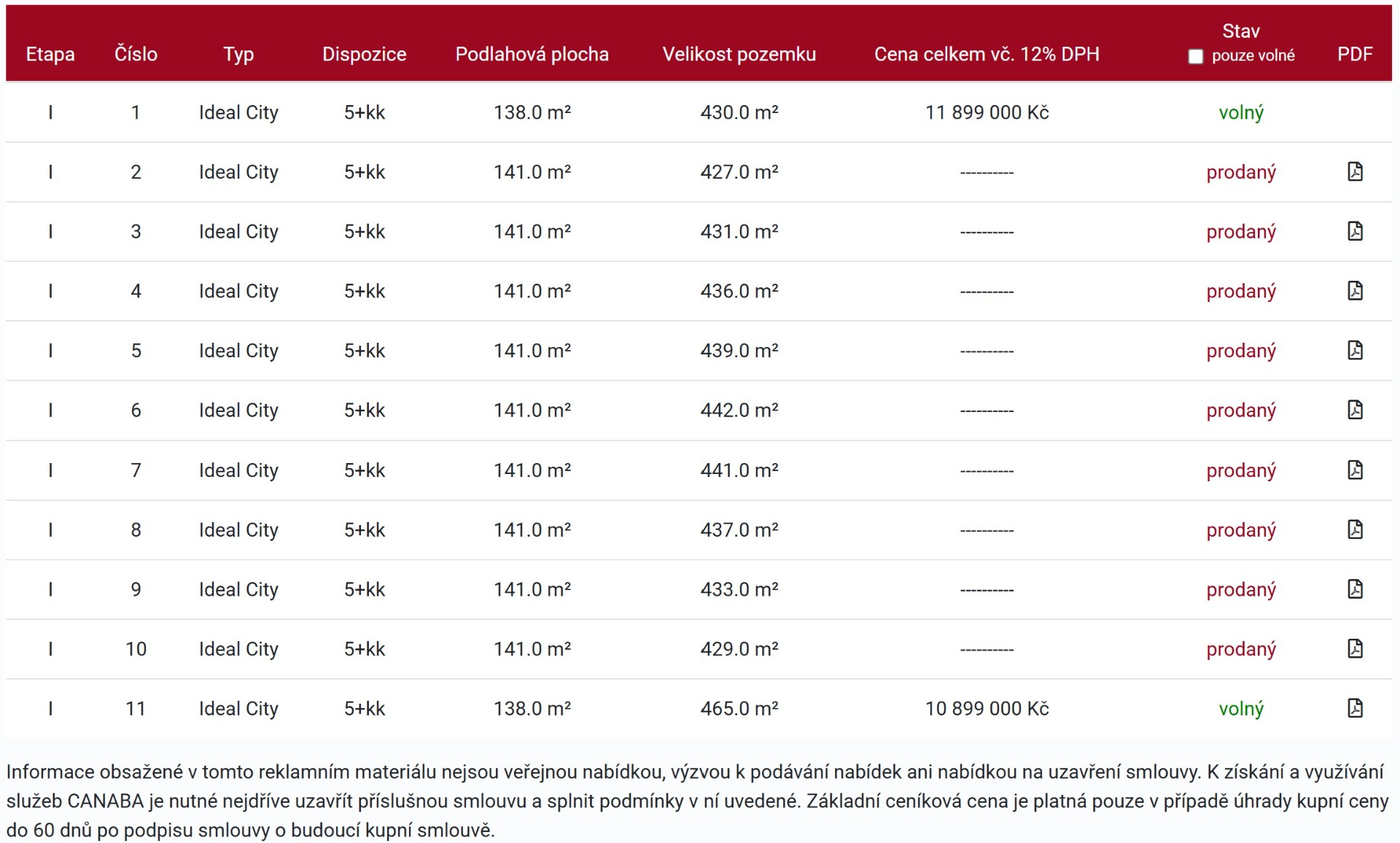 Stav prodaných / rezervovaných / volných RD k 30. 01. 2026